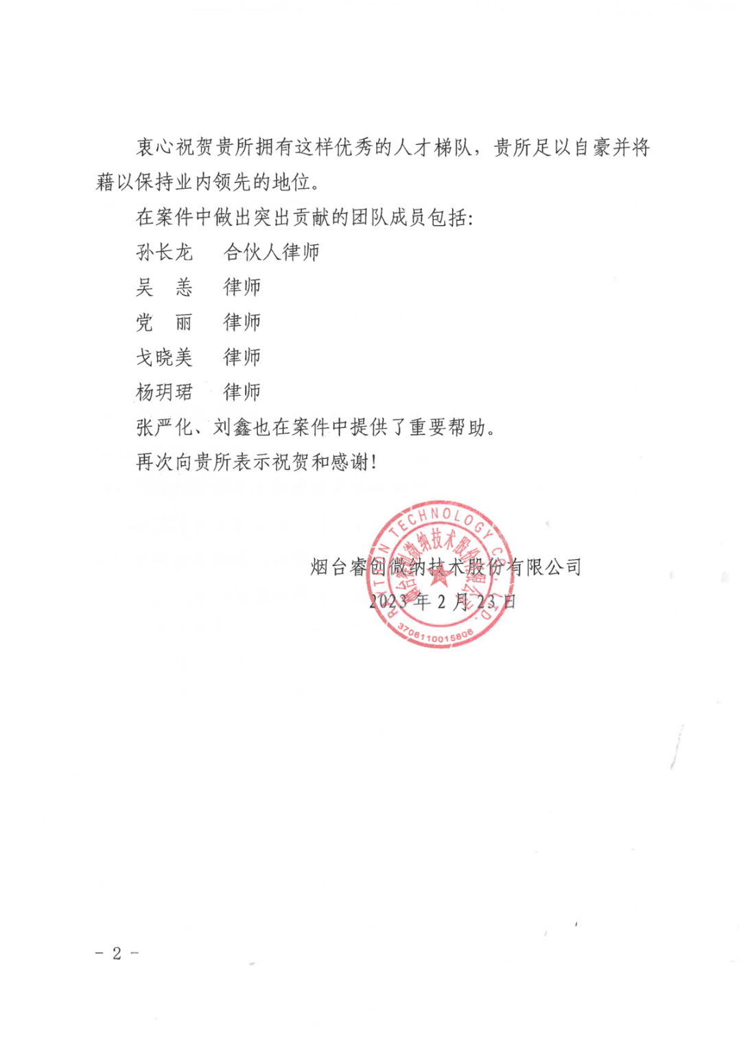 最后,感谢睿创集团知识产权团队对于本案的积极贡献,以及对于开云的支持与信任,共同成就恶意诉讼案的最终胜利!
