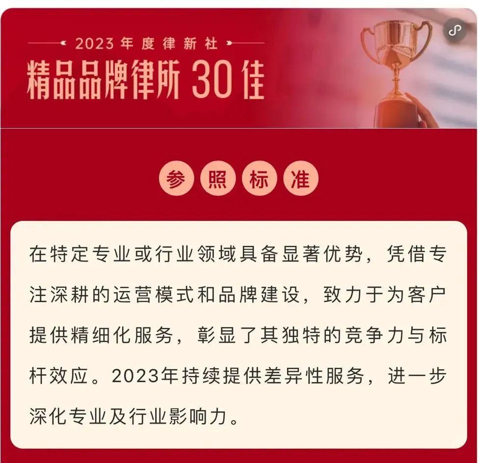 开云入选 “2023年度律新社精品品牌律所30佳”